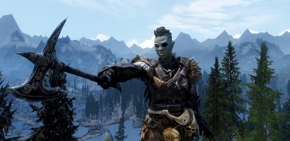 The one and only Dragonborn, when she isn't spending time as a bard. Once hated her werewolf curse, now embraces it.Lost an eye when she defeated Alduin, but doesn't mind all that much.