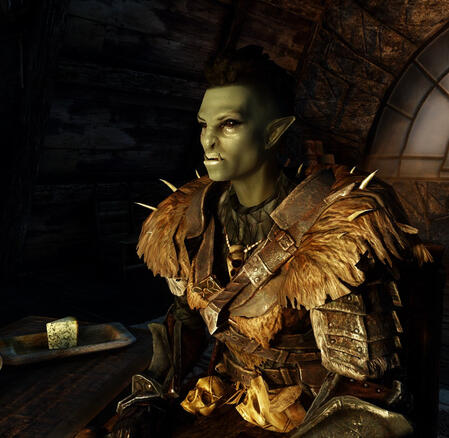 Originally from High Rock, Sloan first came to Skyrim in search of her adoptive father, Amastian. Although it was common for him to leave home for extended periods of time, after half a year, she felt something was wrong. During the trip, her ship wrecked off the coast of Winterhold, and it was a miracle that she even lived.Sloan began traveling as soon as she was well enough to do so. Curious about orc culture, she made it a point to stop by any strongholds she heard of, as there were few orcs where she'd grown up. Clues about her father were few and far between, but Sloan was surprisingly able to learn some information related to her birth parents. Coincidentally, they had left in the direction of High Rock many years ago...Just when Sloan believed she was beginning to pick up her father's trail, she had an encounter with a werewolf and was bitten. The experience forced her to slow down, and as a result the lead she was pursuing was lost, leaving Sloan without anything to go on once again.Frustrated and wandering aimlessly, it was only by chance that she came upon the destroyed town of Helgen. Rumors of dragons led her to Whiterun. From there, it wasn't long until Sloan discovered that she was the Dragonborn.